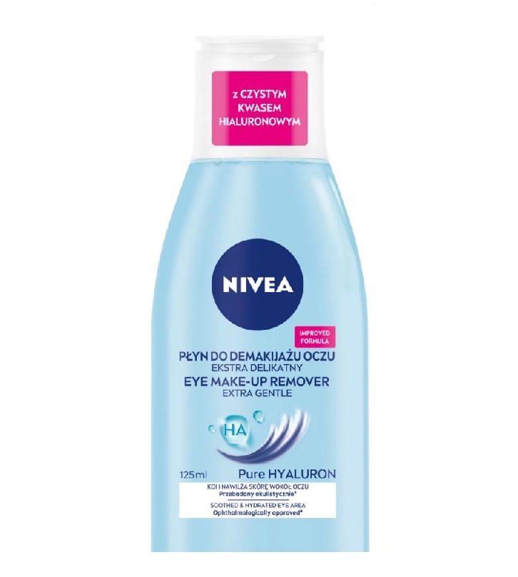 Odkryj Ekstra delikatny płyn do demakijażu oczu od NIVEA! Ulepszona formuła wzbogacona o czysty kwas hialuronowy skutecznie i jednocześnie niezwykle łagodnie usuwa makijaż oczu oraz tusz do rzęs. Jednocześnie, płyn do demakijażu oczu zapewnia nawilżenie i ukojenie dla wrażliwych okolic oczu. Dzięki braku kompozycji zapachowej nie podrażnia i jest niezwykle delikatny dla skóry - płyn do demakijażu oczu NIVEA jest odpowiedni również dla osób noszących szkła kontaktowe.