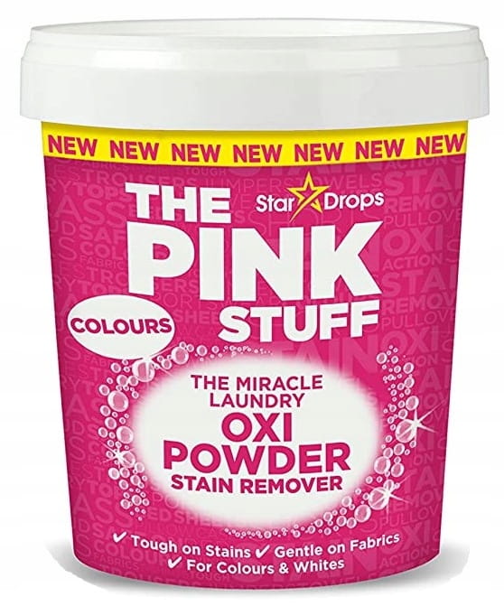 Rozpraw się z uporczywymi plamami na kolorowych ubraniach i tkaninach. THE PINK STUFF Oxi Powder Stain Remover to odplamiacz w proszku do tkanin kolorowych i białych. Zawiera formułę oksydacyjną, która z łatwością usuwa plamy i jednocześnie jest delikatna dla materiału. Pozostawia przyjemny zapach. Idealny do odplamiania ręczników, ubrań, ściereczek, pościeli i innych.