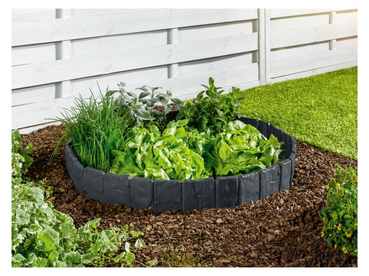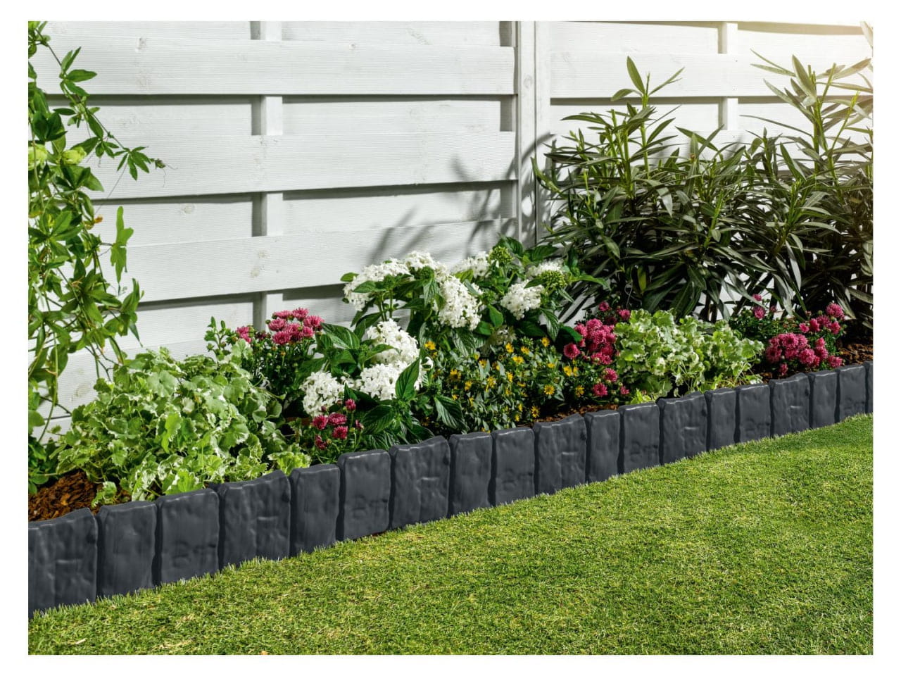 - dekoracyjne obrzeże trawnika w stylistyce kamienia do rabat kwiatowych, trawników lub ogrodów warzywnych