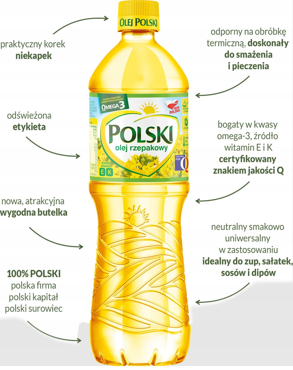 Dzięki zastosowaniu zaawansowanych technologii tłoczenia i rafinacji Olej Polski wyróżnia się najwyższą jakością. Zabezpieczona patentem metoda produkcji - unikalna w skali całego kraju - nadaje delikatnego smaku naszym olejom, co pozwala podkreślać atuty ulubionych potraw oraz zadowalać najbardziej wymagające podniebienia.