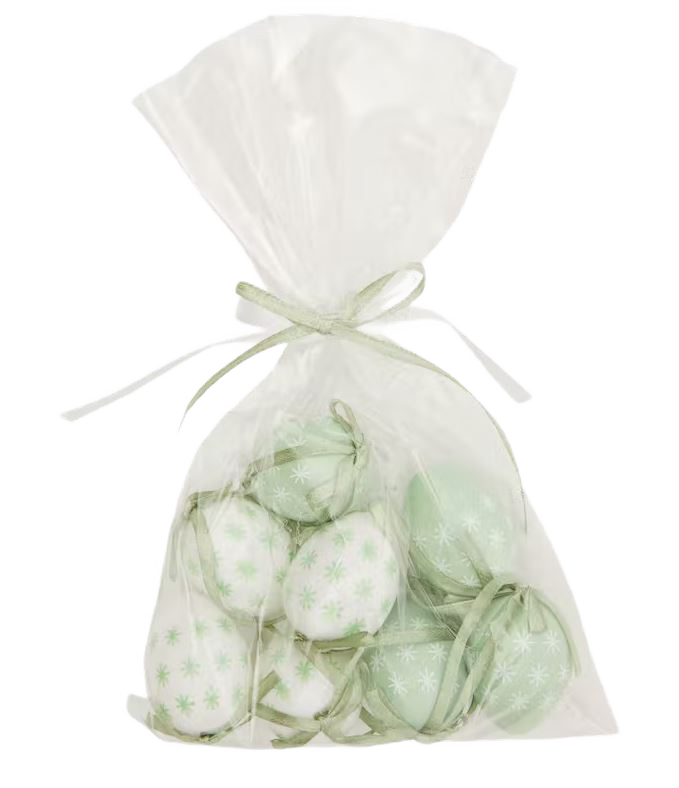 Ozdobne Jaja wielkanocne w woreczku 8 sztuk biało-zielone