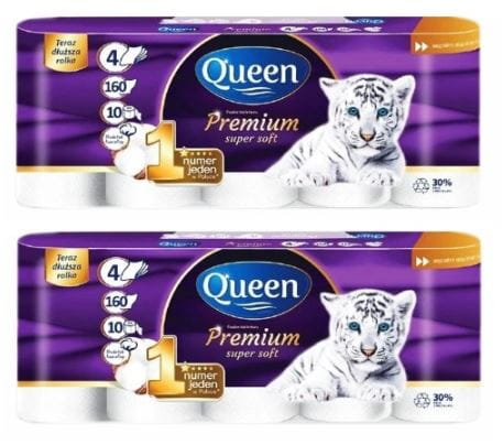 Queen Premium, to papier będący innowacyjnym połączeniem 4 miękkich i jedwabistych warstw. Wyjątkowo miękki i delikatny dla wrażliwej skóry. Posiada dodatek bawełny. Doskonale zadba o Twoją skórę. Nie podrażnia. Każda rolka papieru Queen wystarcza na bardzo długo. Jest numerem jeden, wśród papierów toaletowych dostępnych na polskim rynku.