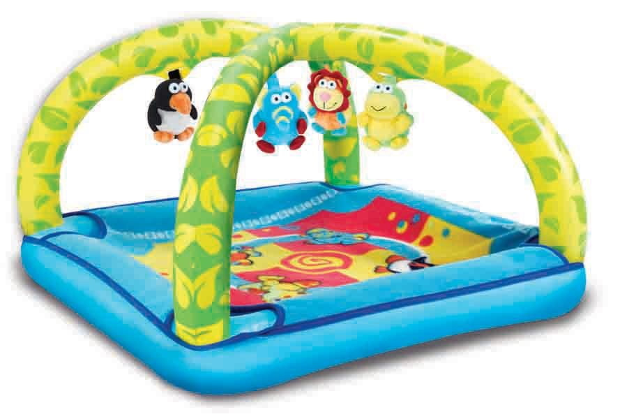 Ta innowacyjna, nadmuchiwana mata z mięciutkim, odczepianym kocykiem zapewni Twojemu maluszkowi komfort, stymulację zmysłów oraz wprowadzi go w świat kolorów, kształtów i zwierzątek. Zabawka zawiera: odczepianych grzechoczących przyjaciół: lwa Lenny`ego, pingwina Petey`a, smoka Digby`ego oraz słonika Edgara.