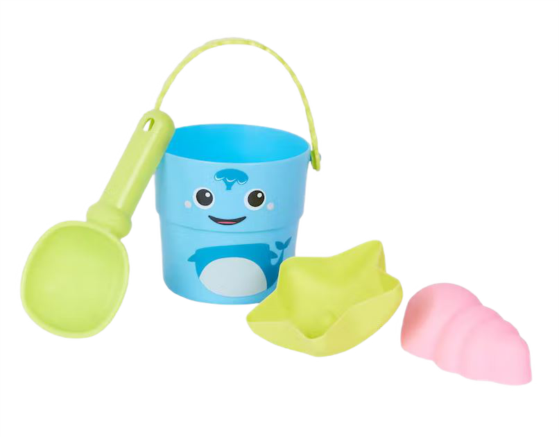 Z wesołym zestawem zabawek do piasku będziesz wspaniale się bawić na plaży. Wykop trochę piasku, wrzuć go do wiaderka, a następnie wsyp piasek do foremek. Rób najpiękniejsze figurki z piasku i stwórz własne dzieło sztuki.