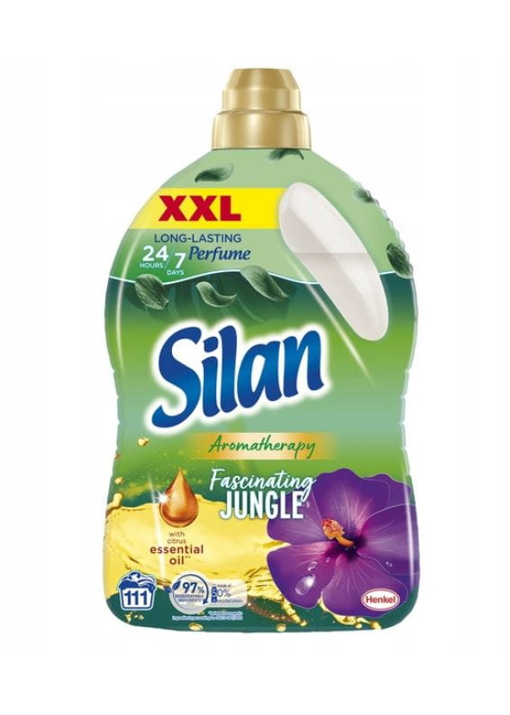Płyn do płukania Silan Aromatherapy Fascinating Jungle to płyn do zmiękczania tkanin Silan z formułą mikrokapsułek zapachowych. Zapewnia on świeżość i zapach tkanin po przechowywaniu w garderobie aż do 140 dni. Ponadto formuła jest wzbogacona o technologię neutralizacji nieprzyjemnych zapachów. Innowacyjne mikrokapsułki zapachowe pękają w wyniku tarcia podczas noszenia odzieży i uwalniają zapach świeżego prania. W ten sposób każdego dnia możesz cieszyć się unikalnym zapachem świeżości. Opakowanie jest przyjazne środowisku - butelka Silan w 100% nadaje się do recyklingu. Efekt mikrokapsułek zapachowych: zapach ubrań po przechowywaniu w garderobie do 140 dni. Ciesz się kojącym zapachem kwiatowym, który pomoże Ci się zrelaksować. Dzięki składnikom inspirowanym naturą, płyn do płukania tkanin Silan Aromatherapy+ sprawi, że kuszący i zmysłowy zapach świeżego prania rozpieści Twoje ciało i umysł.