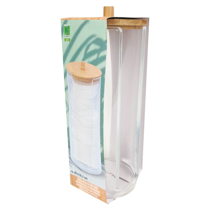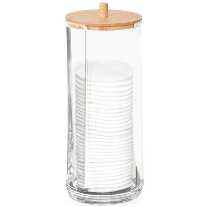 Pojemnik łazienkowy podajnik na waciki Przezroczysty z pokrywką bambusową