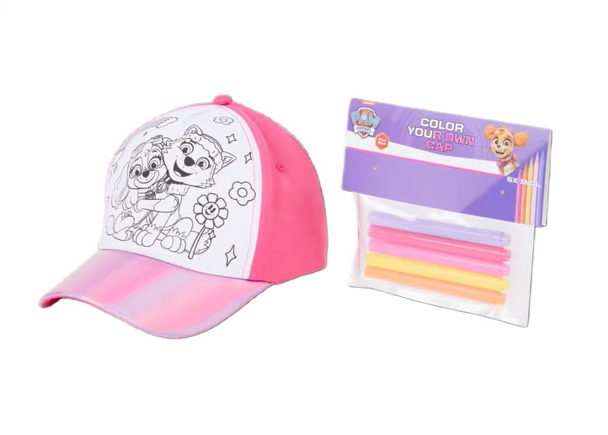 Pomaluj swoją czapkę czapeczkę Psi patrol różowa + 5 mazaków