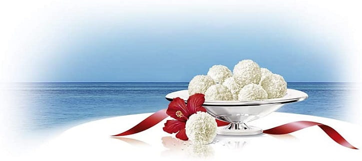 Biały migdał, osadzony w delikatnym kremie mlecznym z najlepszym odtłuszczonym mlekiem, otoczony chrupiącym waflem i delikatnym kokosem