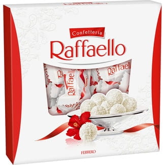 Raffaello to kokosowy smakołyk z chrupiącego wafelka, który w środku skrywa migdał zatopiony w aksamitnym kremie. Całość otulona jest delikatnymi płatkami kokosa. Słodkim upominkiem można sprawić wiele radości ukochanej osobie, dlatego Raffaello to doskonały prezent w wyjątkowych chwilach.