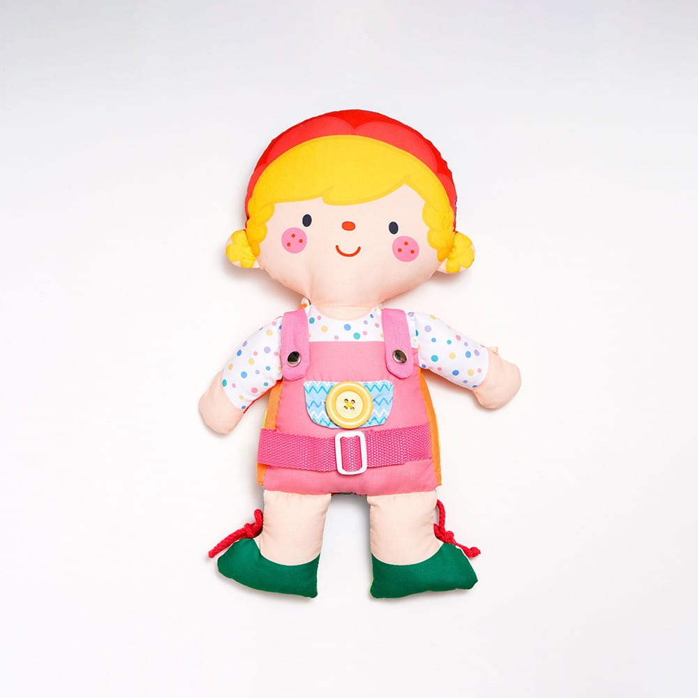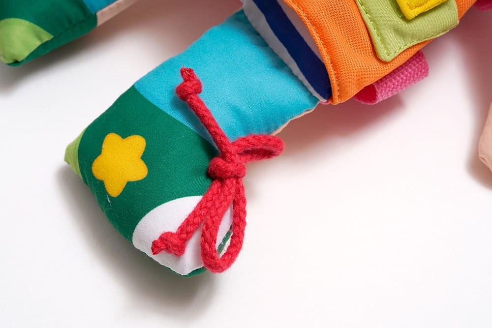 Graj i ucz się w tym samym czasie! Zamki, rzepy, guziki umożliwiają dzieciom trening samodzielnego ubierania się czy wiązania sznurówek.