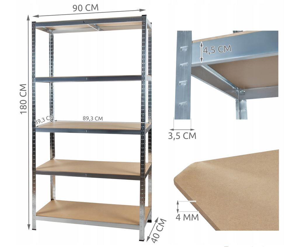 - Materiał półki: stal ocynkowana, płyta MDF