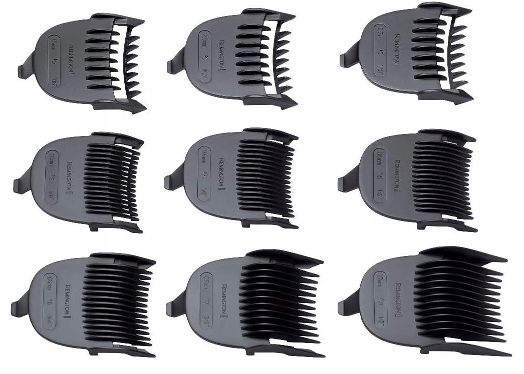 - Dziewięć stałych grzebieni (1,5, 2, 2,5, 3, 4,5, 6, 9, 12, 15 mm)