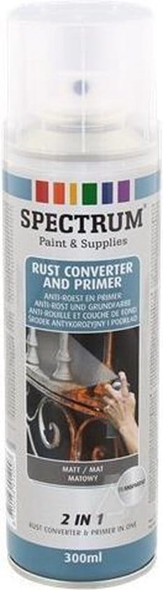 Ta farba w sprayu zatrzymuje i neutralizuje rdzę oraz działa jako podkład pod nowe warstwy farby na metalu. Został specjalnie opracowany, aby zapobiec początkowemu powstawaniu rdzy i dalszemu rdzewieniu. Można malować prawie każdym systemem lakierniczym. Po 2 godzinach zapewnia wyjątkowo dobrą przyczepność do gołej stali i matowe wykończenie.