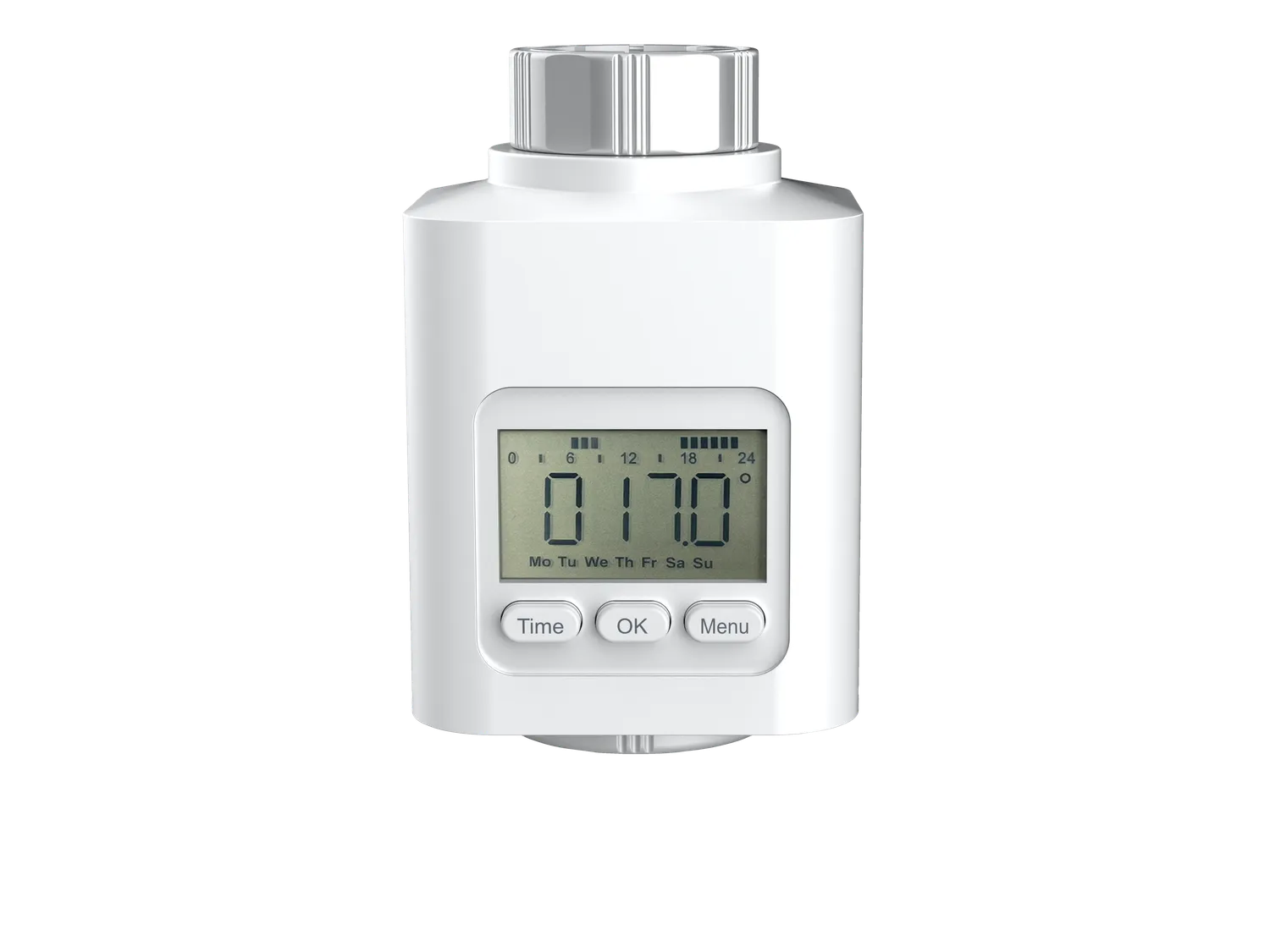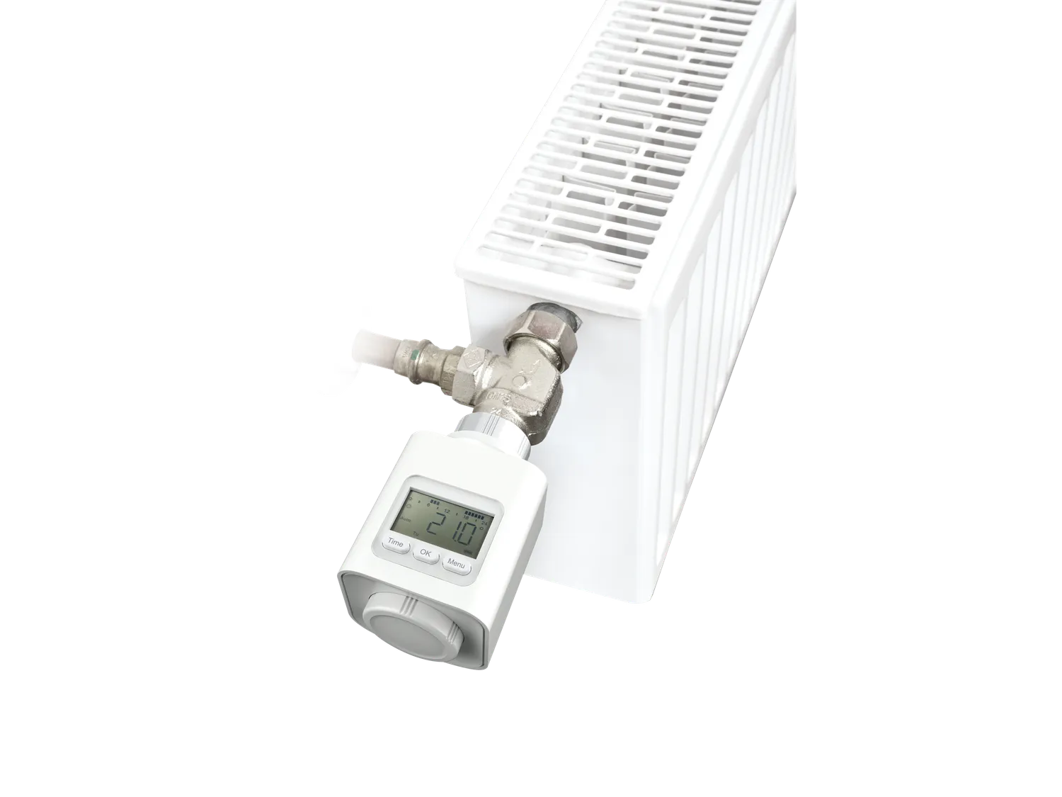 Programowalny termostat grzejnikowy z przystosowany do wszystkich zaworów grzejnikowych z gwintem M30 × 1,5 mm i poprzez adapter do zaworów RA, RAV, RAVL i HERZ.