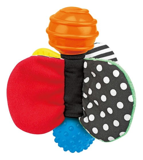 Kolorowa, sensoryczna zabawka stymuluje zmysły dziecka, takie jak widzenie, dotykanie i słuchanie. Świetnie sprawdza się również w przypadku ząbkujących maluszków. Jej forma sprawia, że jest łatwa do uchwycenia przez dziecko, a różnorodne strony zabawki rozwiną poznawanie nowych kształtów.
