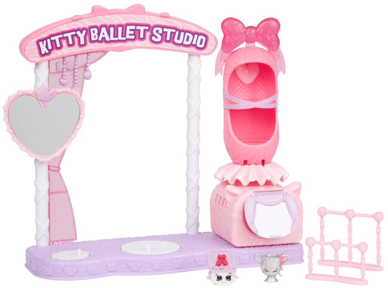Shopkins urocza seria figurek, które podbijają serca dziewczynek na całym świecie. Może masz ochotę na naukę tańca? Shopkins zapraszają cię na wyjątkową lekcję do Szkoły tańca Kitty! Zestaw utrzymany jest w ślicznych różowo-białych barwach, z mnóstwem słodkich akcentów w formie kokard, falban i innych, co jeszcze bardziej dodaje uroku!