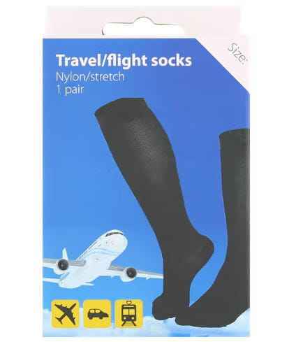 Wygodne nylonowe skarpety na długą podróż samochodem, samolotem lub pociągiem.