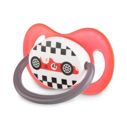 Smoczek uspokajający RACING wykonany z najwyższej jakości, bezzapachowego i bezsmakowego silikonu. Wyposażony w gumkę o symetrycznym kształcie. Zapewnia swobodne oddychanie i połykanie śliny. Smoczek dobrze odpowietrza się, dzięki specjalnym otworom wentylacyjnym na tarczce. Specjalnie zaprojektowany kształt tarczki, minimalizuje odciskanie się smoczka na delikatnej buzi dziecka. Nie zawiera BPA. Dostępny w kilku kolorach. Przeznaczony dla dzieci w wieku 0-6 miesięcy.