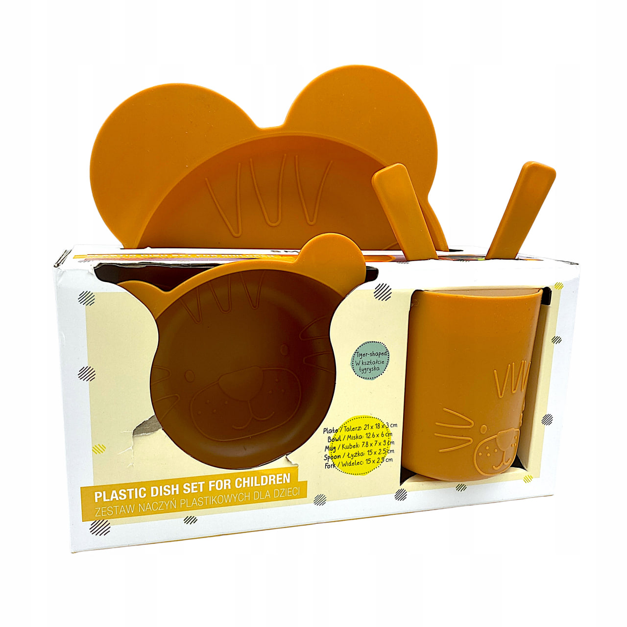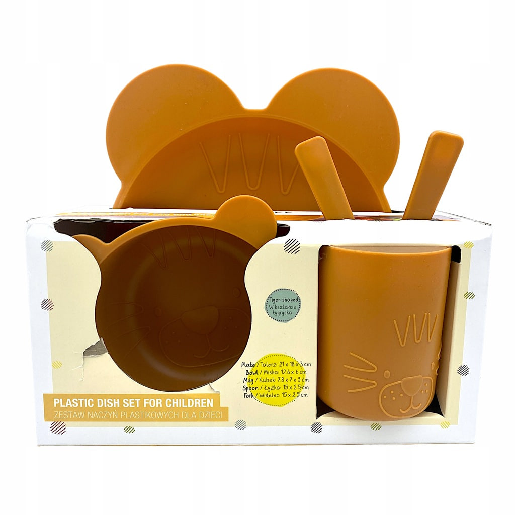 Zestaw Naczyń Plastikowych dla Dzieci – p[omarańczowy, w Kształcie Tygrysa