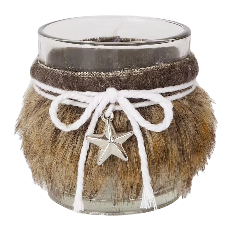 Świecznik szklany do tealightów Z futerkiem Gwiazdka