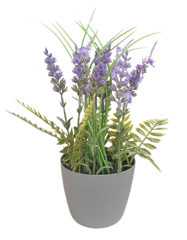 Sztuczna Lawenda kwiaty w szarej doniczce 30 cm