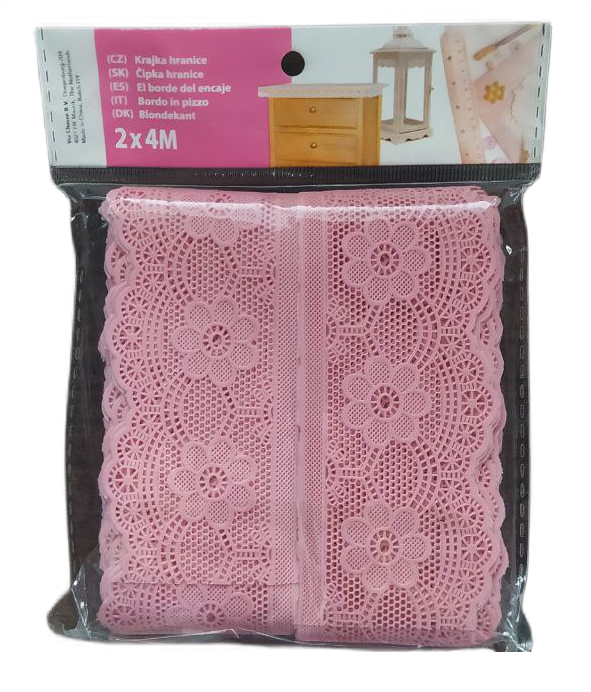 Taśma gumowana Koronkowa lamówka 2 x 4m różowa