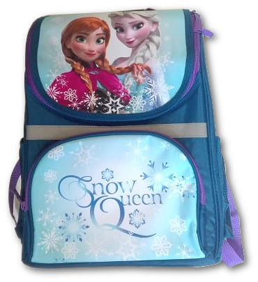 Tornister Snow Queen Kraina lodu lekki, usztywniony. Plecy i boki tornistra są usztywnione, tył pokryty jest siateczką kieszenie boczne także. Tornister posiada regulowane ramiona, usztywnione, z jednej strony pokryte siateczką. Z przodu znajdują się 2 komory, jedna główna a druga mała np. na 2 śniadanie. w środku głównej komory znajdują się 2 przegrody. Od spodu tornistra znajdują się plastikowe nóżki. Tornister posiada plastikową wygodną rączkę.
