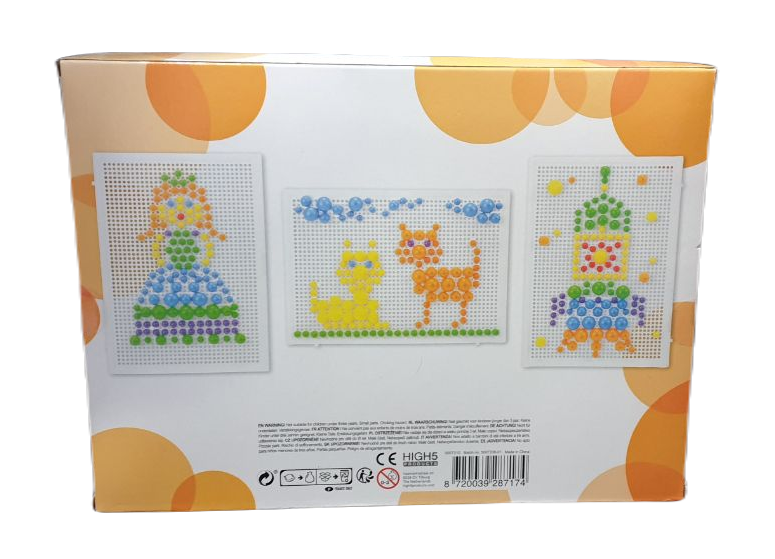 Stwórz własną ilustrację z kolorowych pinezek. To układanka kreatywna do tworzenia mozaiki. Cała zabawa polega na wprowadzaniu guzików do tablicy w taki sposób, aby stworzyć wspaniały obraz! Z tym zestawem dziecko może stać się wspaniałym artystą. Maluch usprawnia nie tylko swoje zdolności manualne, poszerzy wyobraźnię, ale także pozna tajniki kreatywnej zabawy! W zestawie 300 elementów.