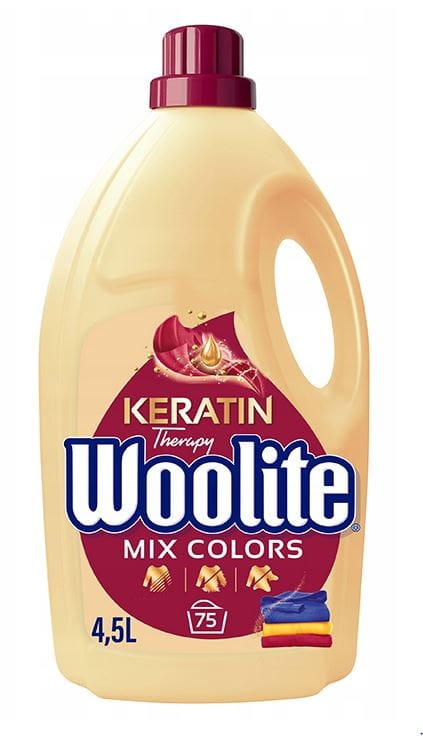 Płyn do prania Woolite mix kolorów z Keratyną skutecznie pierze oraz pomaga chronić kolory ubrań przed zafarbowaniem. Unikalna formuła płynu Woolite zapewnia ochronę przed blaknięciem kolorów tkanin, zachowując ich nowy wygląd na dłużej. Keratyna zawarta w płynie do prania Woolite wygładza włókna i nadaje im blask. Składniki chronią jaśniejsze elementy na ubraniach przed farbowaniem i blaknięciem. Woolite zachęca do jeszcze lepszego dbania o tkaniny wprowadzając na rynek produkty do prania z Keratyną, znaną z pielęgnacji włosów.