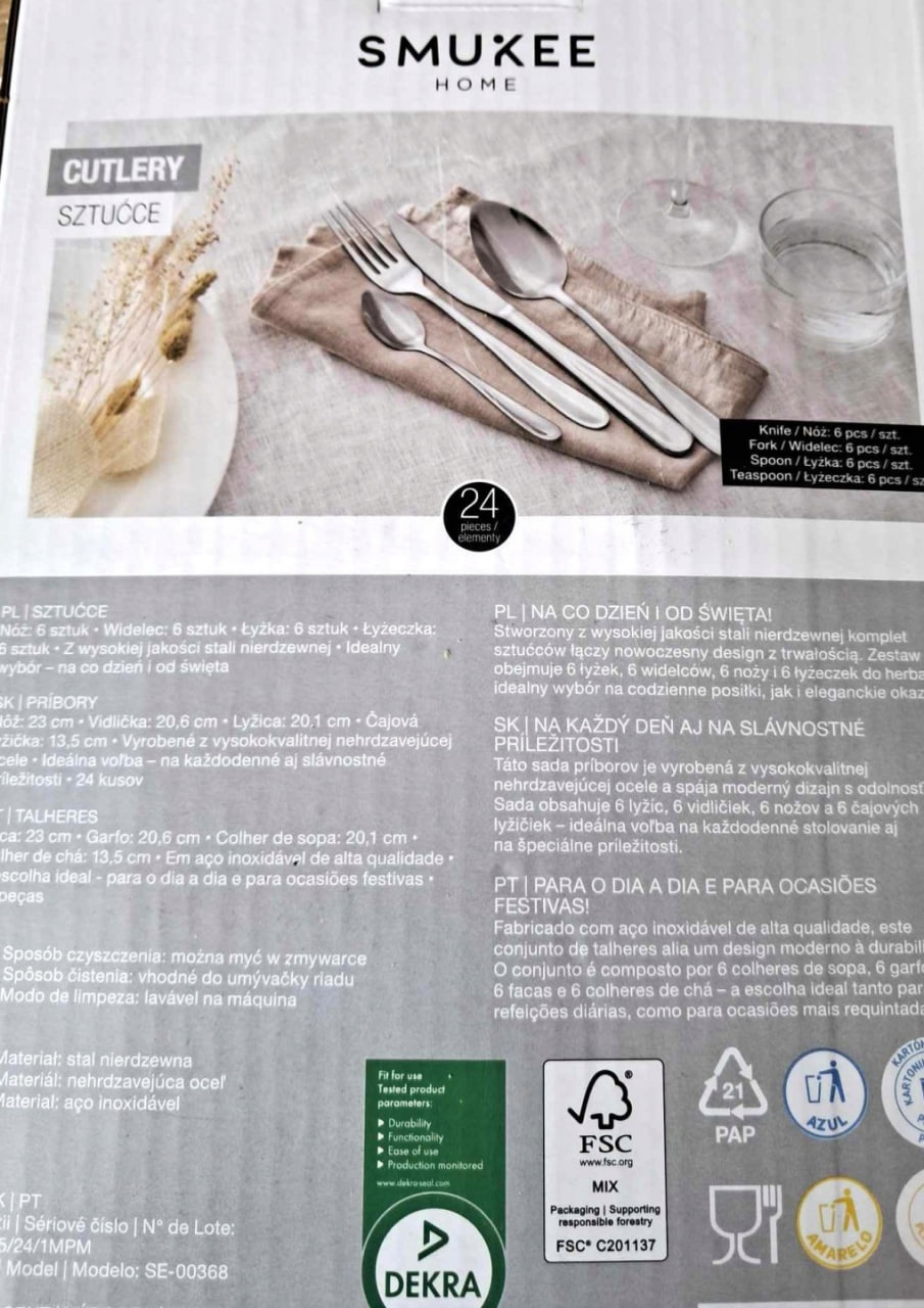 ZESTAW SZTUĆCÓW komplet obiadowy sztućce 24 elementy SMUKEE
