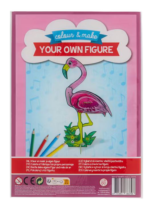 Pokoloruj swoją figurkę, a następnie złóż wszystkie elementy razem, aby ożywić swoją figurę. W ten sposób stworzysz własną, unikalną figurkę 3D. Figurka jest kartonowa.