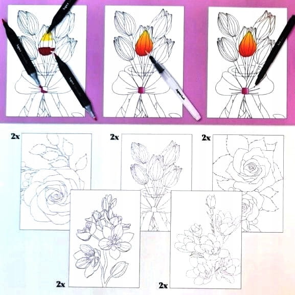 - Z różnymi stronami do kolorowania na papierze o gramaturze 250 g, przeznaczonym specjalnie do akwareli