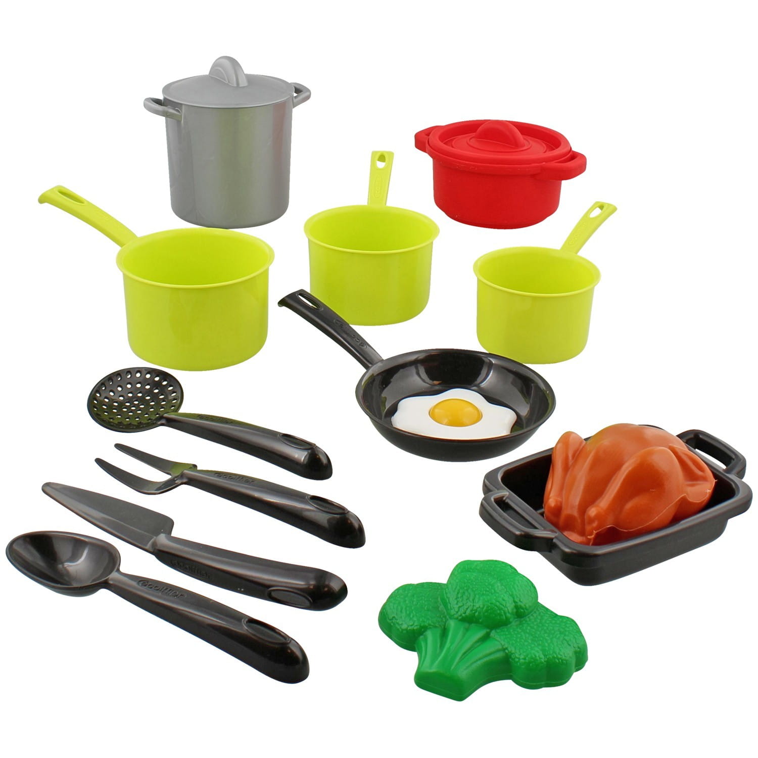 Ten zestaw do idealna zabawka dla każdego dziecka które uwielbia gotowanie! Przyszli kucharze mogą ćwiczyć gotowanie z tym dobrze wyposażonym zestawem do zabawy zawierającym różne garnki, przybory kuchenne i produkty żywnościowe. Zaproś przyjaciół i poczęstuj ich pysznym kurczakiem z jajkiem sadzonym i brokułem!