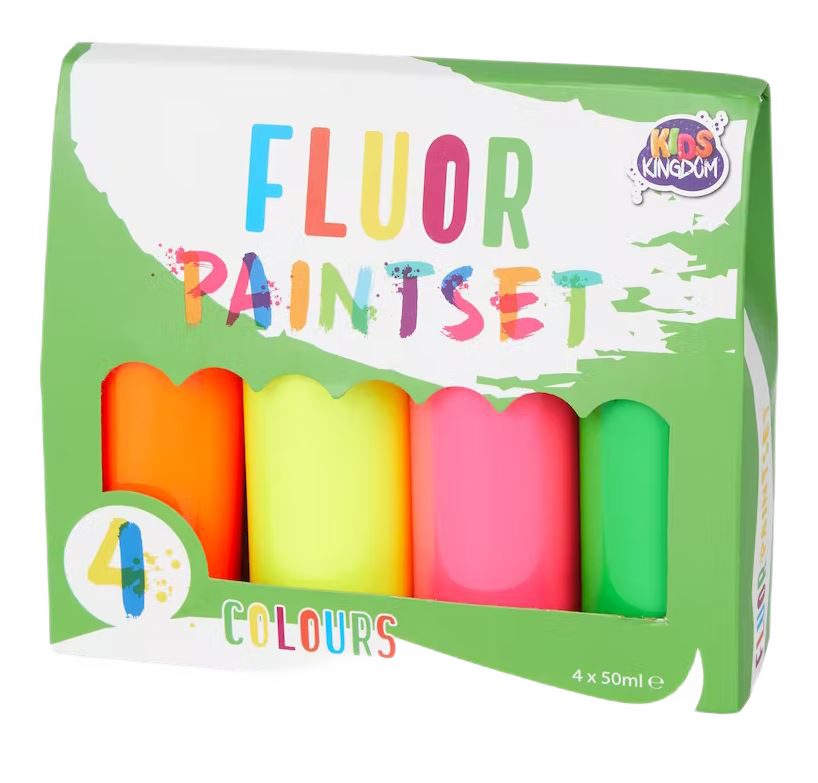 Pokaż się od kreatywnej strony i stwórz najpiękniejsze dzieła za pomocą 4-kolorowego zestawu farb. Zestaw farb fluorescencyjnych w odcieniach neonowych.