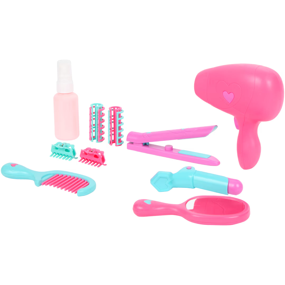 Chcesz zostać fryzjerem lub stylistą fryzur? Kręć, stylizuj i susz włosy z 11-częściowym zestawem fryzjerskim. Z grzebieniem, lustrem, spinkami do włosów i produktami do stylizacji.