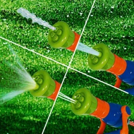 Można go szybko i łatwo przymocować do węża ogrodowego za pomocą prostego systemu zatrzaskowego. Aby zmienić ciśnienie wody wystarczy przesunąć uchwyt zabawki.