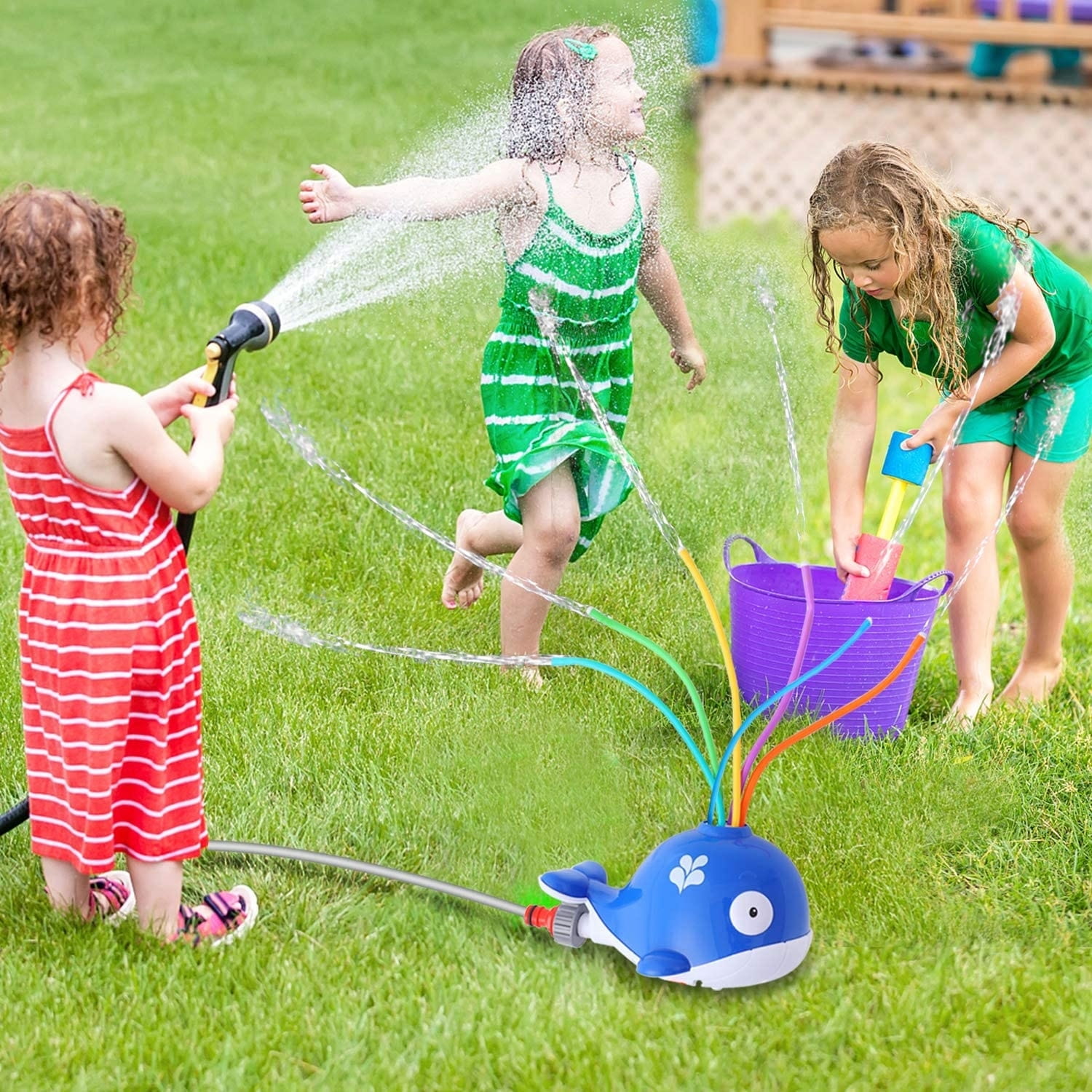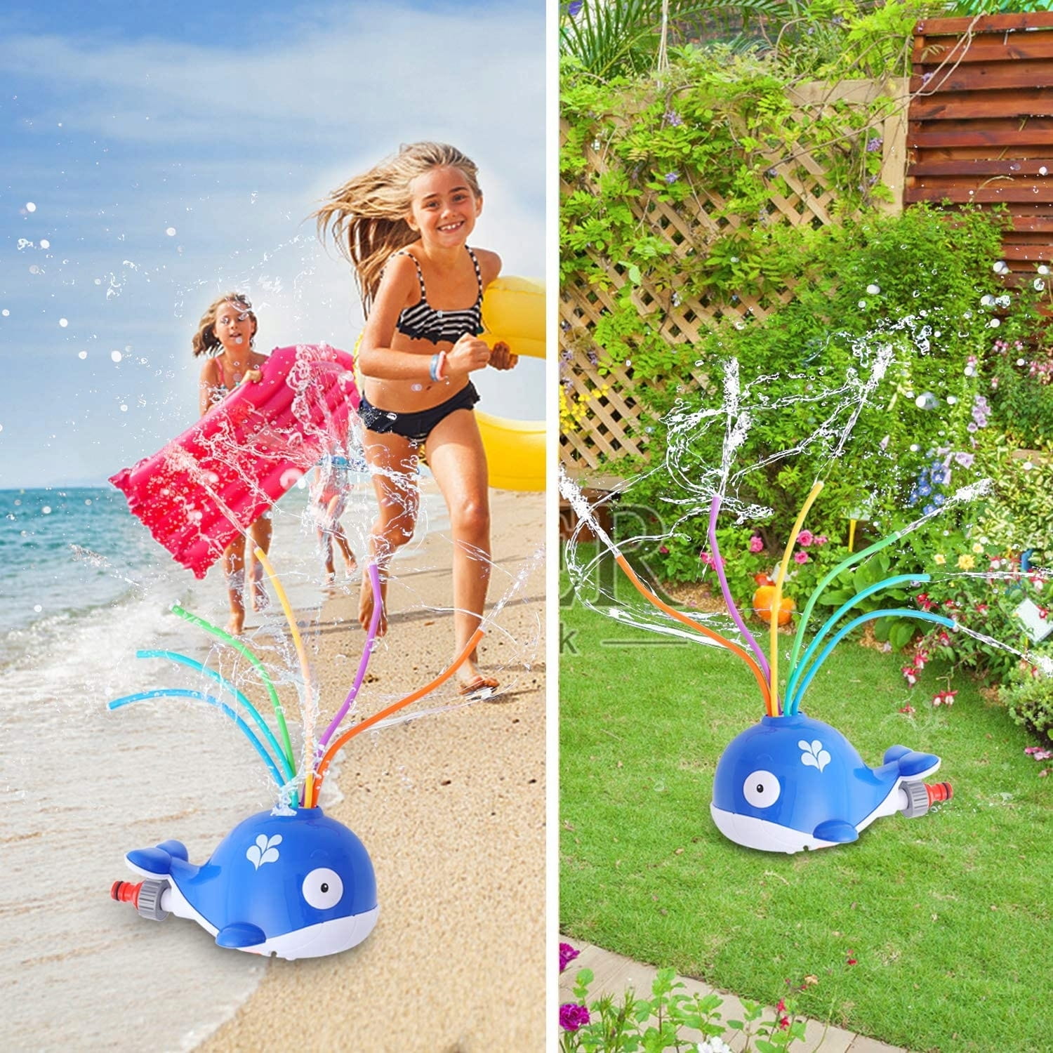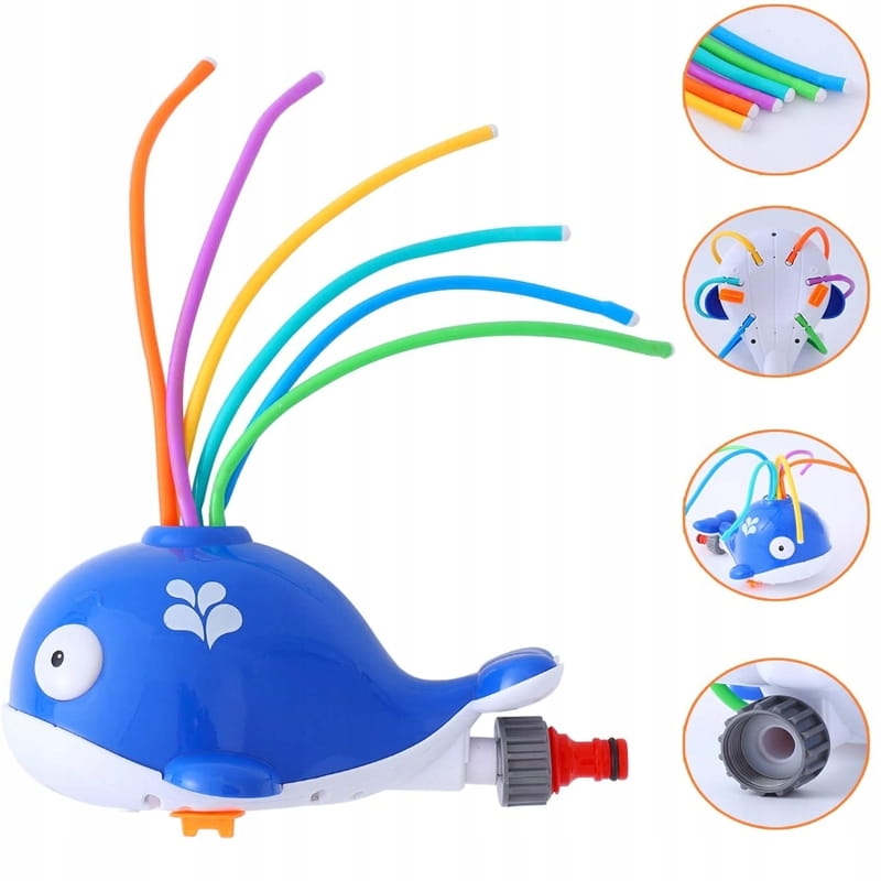 Wesołe zabawki ze zraszaczami wielorybów puszczają strumienie wody przez kolorowe węże, wyrzucając i rozpryskując wodę wszędzie. Może to przynieść wiele godzin zabawy na świeżym powietrzu.