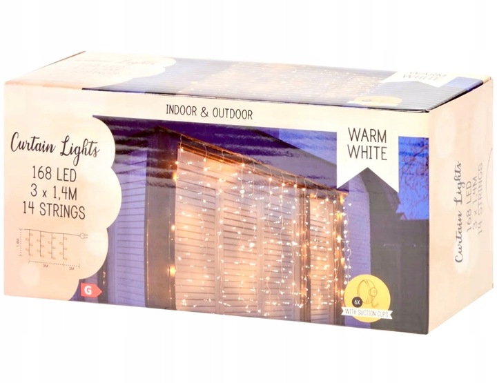 kurtyna świetlna ZEWNĘTRZNA I WEWNĘTRZNA 168LED 3X1,4M 14 Sznurów
