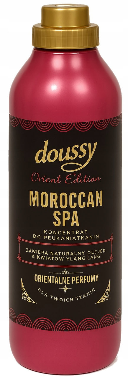 Przenieś swoje zmysły do orientalnego świata dzięki Doussy Moroccan Spa – koncentratowi do płukania tkanin, który otula ubrania wyjątkowo zmysłowym, długotrwałym zapachem inspirowanym marokańskim spa.