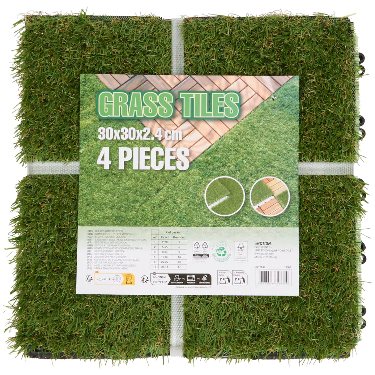płytki trawnikowe ze sztucznej trawy na taras, balkon, do ogrodu 4 sztuki |30x30 cm